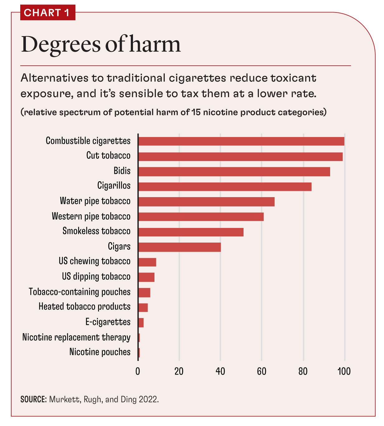 “Harmful” is a highly relative term here. As a chart displayed in the article illustrates, pouches, vapes and heated tobacco products are exponentially less harmful than the combustible cigarettes they replace.